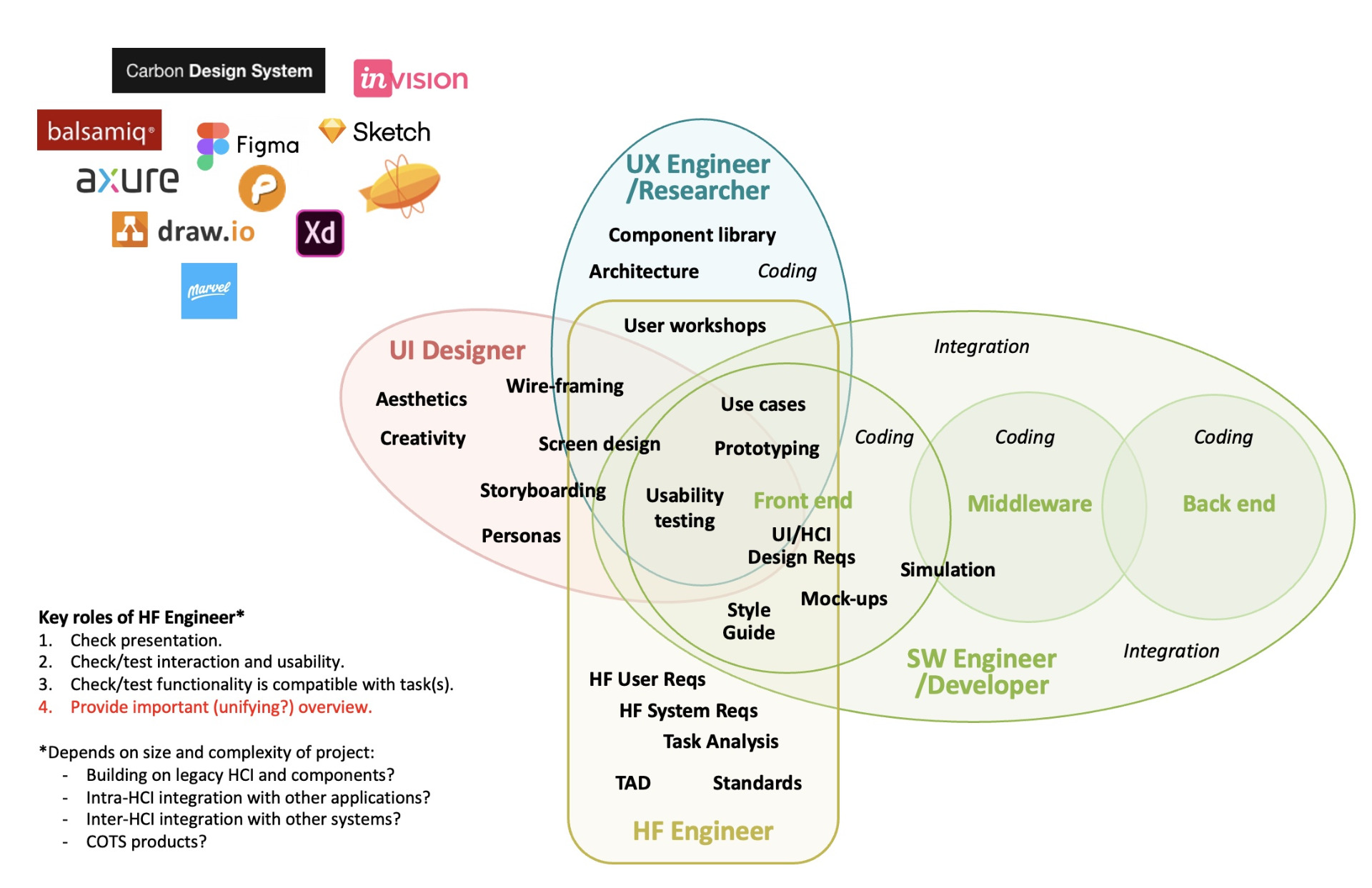 As can be seen, there are considerable overlaps between the four, and hence the confusion in understanding or distinguishing between their respective areas of concern. Hence also the reason why UX professionals are sometimes said to be taking over HF or at least encroaching on what HF has traditionally regarded as its domain.